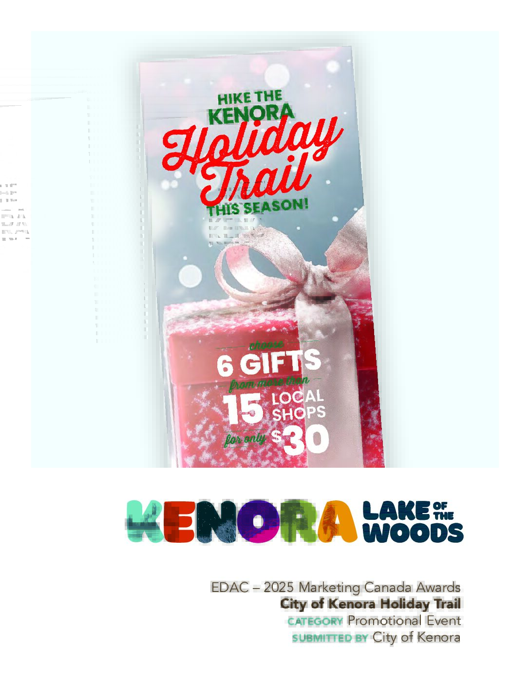 In 2024, the City of Kenora worked with Wake Marketing and partnered with the Harbourtown BIZ (the business improvement area for the downtown core) to develop and launch the Holiday Trail. The Kenora Holiday Trail is a