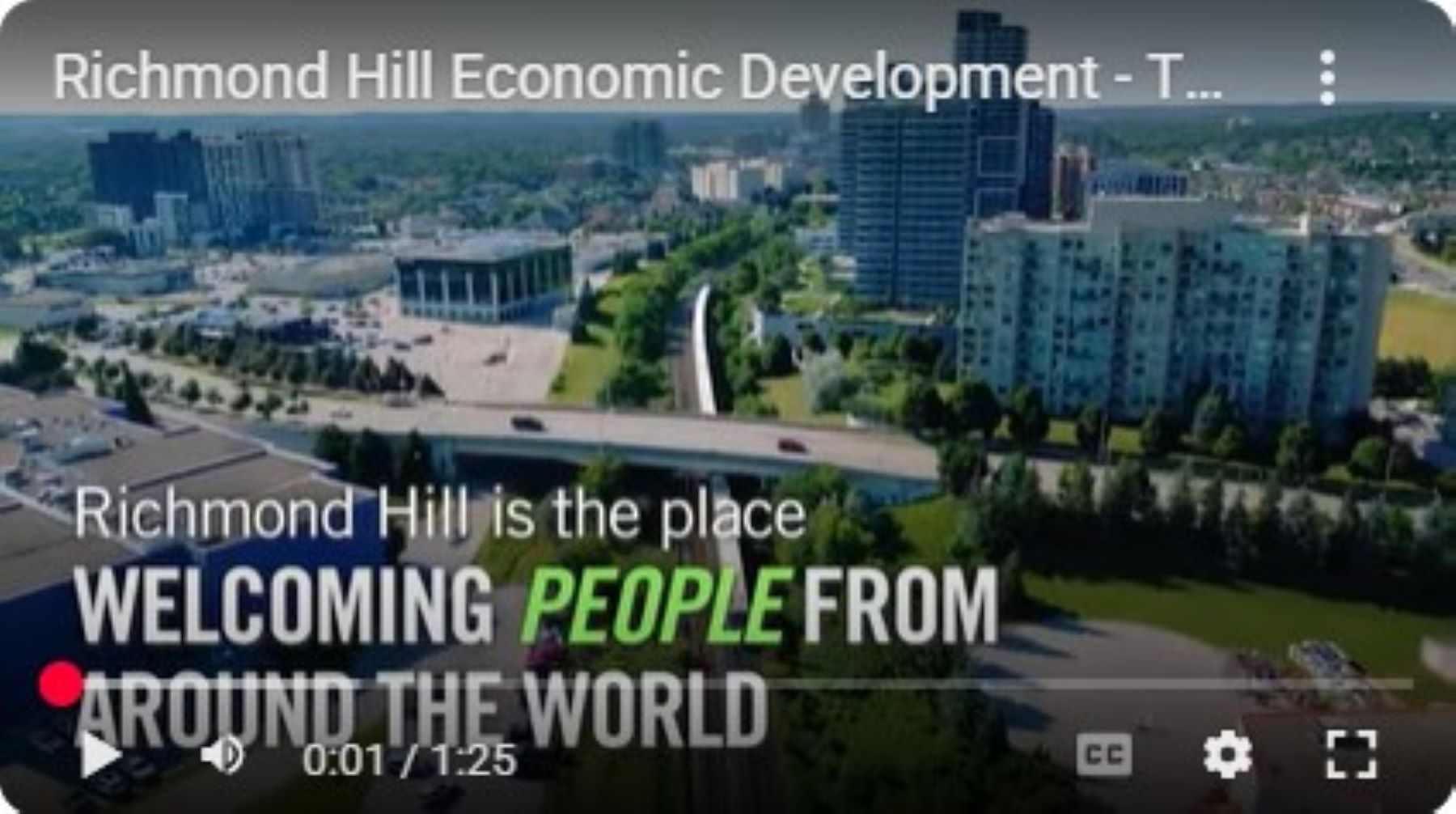 The video effectively demonstrates how Richmond Hill’s strategic location, talented workforce and world-class quality of life combine to create ideal conditions for companies to locate and grow. It highlights the City’s youthful, diverse and innovative character.