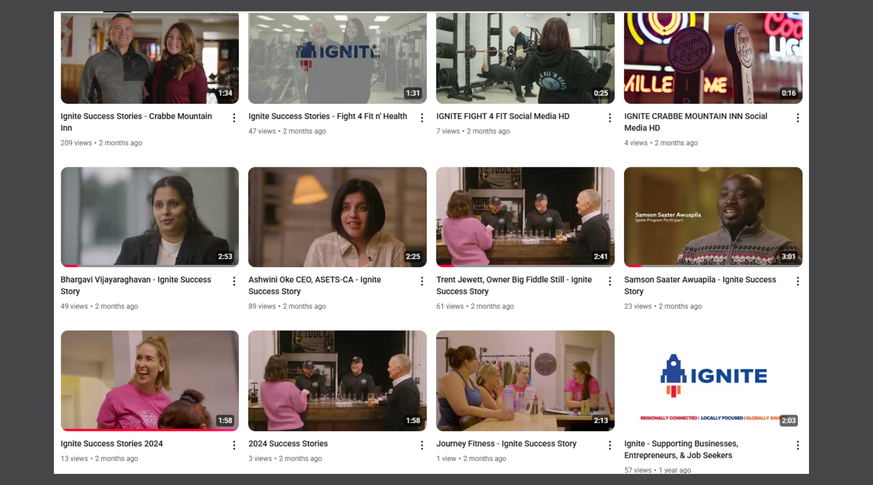 In 2024, we launched a paid advertisement campaign centered around a video titled “Success Stories,” showcasing real testimonials from local entrepreneurs and business owners who have worked with Ignite. The goal of the campaign was to celebrate the impact we’ve made within the community, position Ignite as a trusted and supportive resource, and inspire others by highlighting the real outcomes of our work. The ad copy—“Join us in celebrating the successes of our community. Watch these stories to learn, be inspired, and see how Ignite is making a difference.”—was intentionally written to invite viewers into these stories and help them envision how Ignite could support their own business journey.